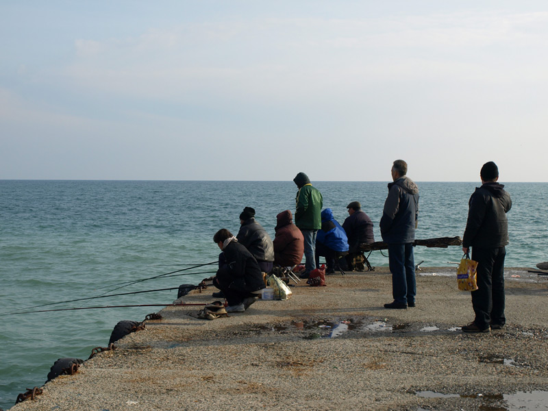 Рыбаки на пирсе.